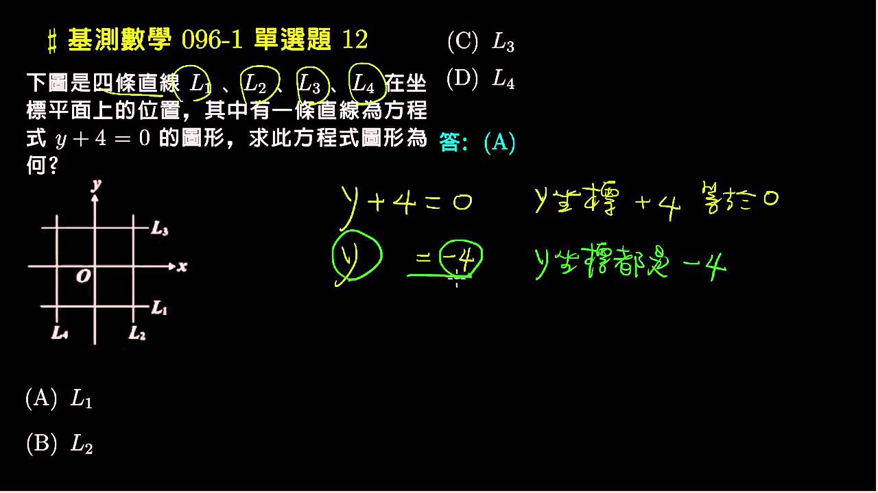 載入中... 相關課程 Back 【基測數學】96v1 單選12:二元一次方程式y=k的圖形 相關課程 0 / 750 登入觀看 ⇐ Use this menu to view and help create subtitles for this video in many different languages. You'll probably want to hide YouTube's captions if using these subtitles. 【基測數學】96v1 單選12:二元一次方程式y=k的圖形 上傳學習單 下載學習單