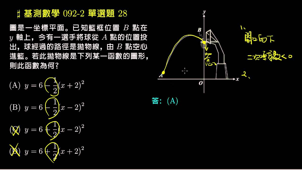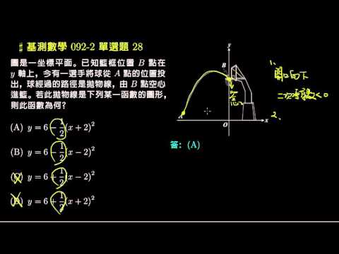 載入中... 相關課程 Back 【基測數學】92v2 單選28:二次函數圖形的意義 相關課程 0 / 750 登入觀看 ⇐ Use this menu to view and help create subtitles for this video in many different languages. You'll probably want to hide YouTube's captions if using these subtitles. 【基測數學】92v2 單選28:二次函數圖形的意義 上傳學習單 下載學習單