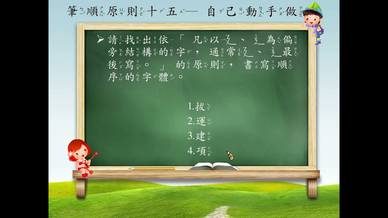 載入中... 相關課程 Back 字形筆順[二]/廴辶為偏旁廴辶最後寫 相關課程 0 / 750 登入觀看 ⇐ Use this menu to view and help create subtitles for this video in many different languages. You'll probably want to hide YouTube's captions if using these subtitles. 字形筆順[二]/廴辶為偏旁廴辶最後寫 上傳學習單 下載學習單