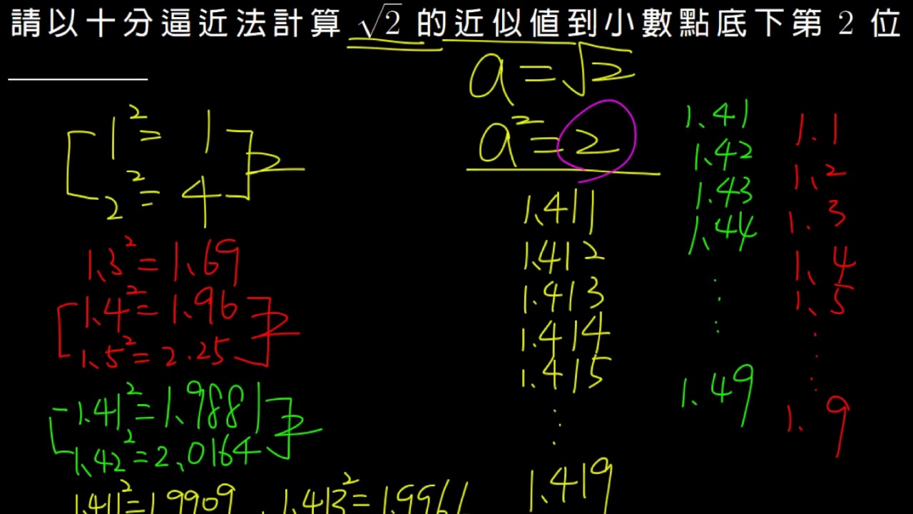 載入中... 相關課程 Back 【例題】用十分逼近法求根號 2 的近似值 相關課程 0 / 750 登入觀看 ⇐ Use this menu to view and help create subtitles for this video in many different languages. You'll probably want to hide YouTube's captions if using these subtitles. 【例題】用十分逼近法求根號 2 的近似值 上傳學習單 下載學習單