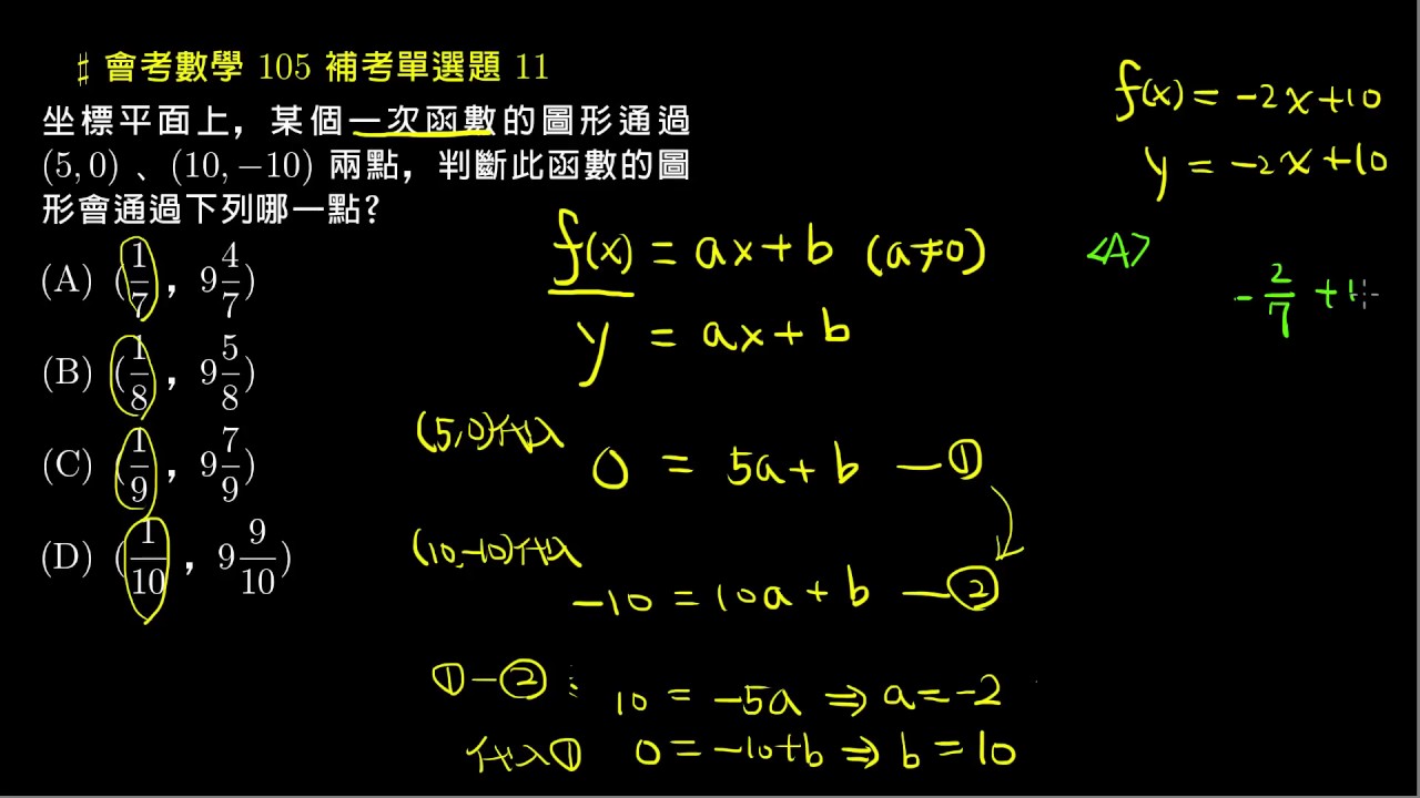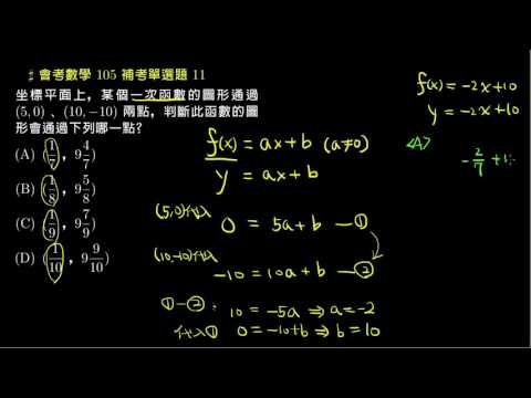 載入中... 相關課程 Back 【會考數學】105補考 單選11:一次函數的圖形 相關課程 0 / 750 登入觀看 ⇐ Use this menu to view and help create subtitles for this video in many different languages. You'll probably want to hide YouTube's captions if using these subtitles. 【會考數學】105補考 單選11:一次函數的圖形 上傳學習單 下載學習單