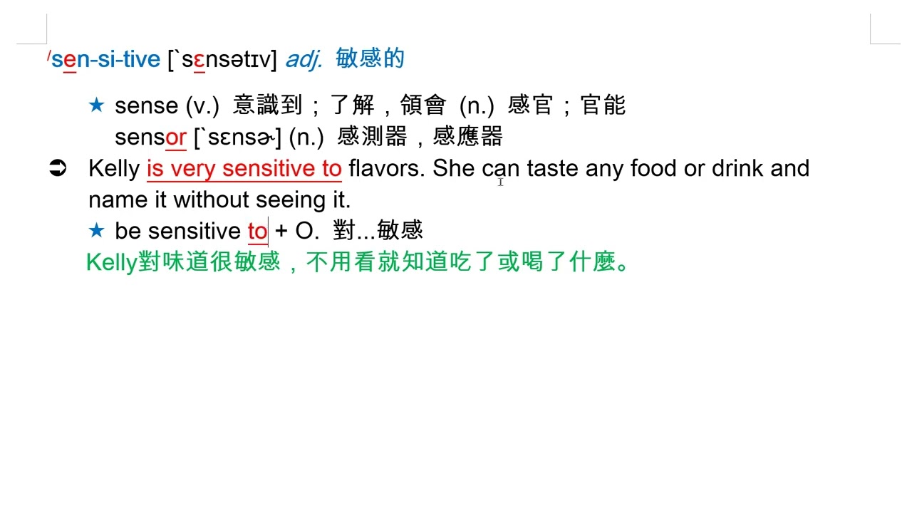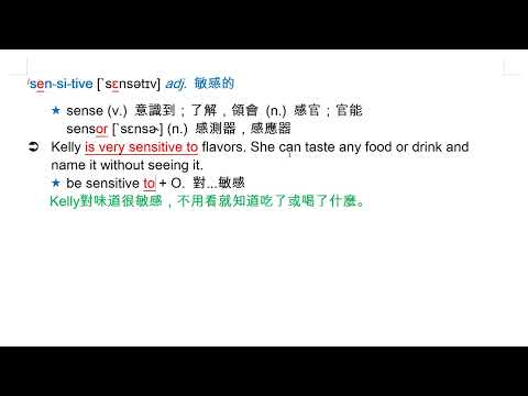 載入中... 相關課程 Back sensitive [`sɛnsətɪv] adj. 敏感的 相關課程 0 / 750 登入觀看 ⇐ Use this menu to view and help create subtitles for this video in many different languages. You'll probably want to hide YouTube's captions if using these subtitles. sensitive [`sɛnsətɪv] adj. 敏感的 上傳學習單 下載學習單