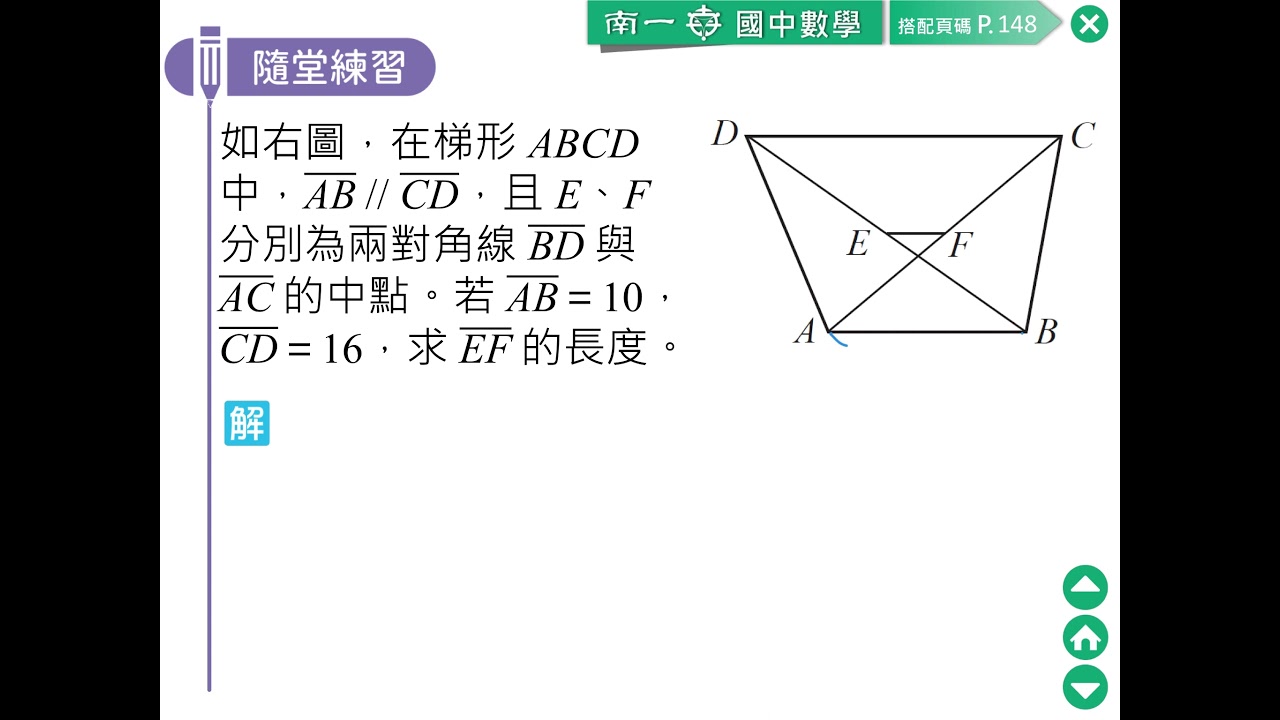 載入中... 相關課程 Back 【證明】梯形對角線中點連線段性質 2 相關課程 0 / 750 登入觀看 ⇐ Use this menu to view and help create subtitles for this video in many different languages. You'll probably want to hide YouTube's captions if using these subtitles. 【證明】梯形對角線中點連線段性質 2 上傳學習單 下載學習單