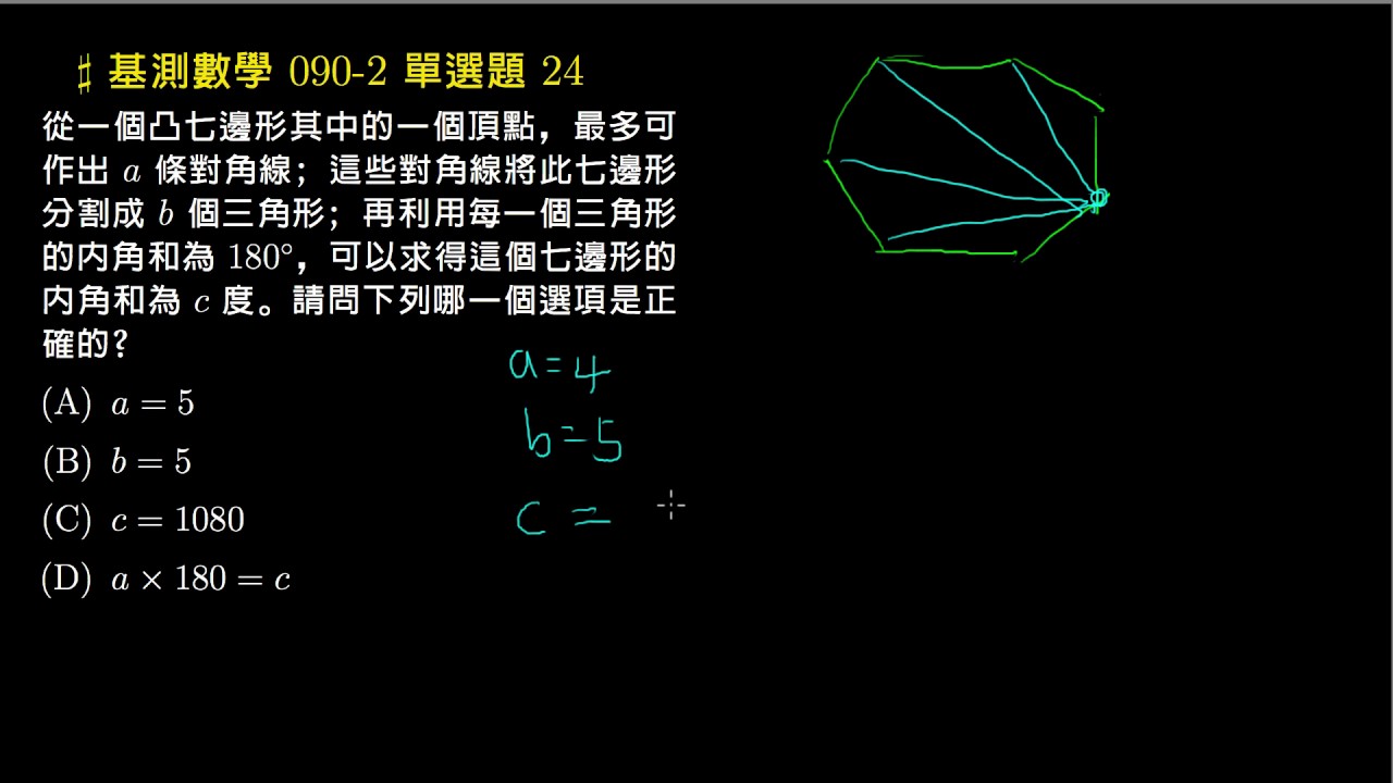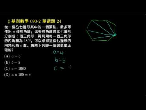 載入中... 相關課程 Back 【基測數學】90v2 單選24:凸七邊形內角和 相關課程 0 / 750 登入觀看 ⇐ Use this menu to view and help create subtitles for this video in many different languages. You'll probably want to hide YouTube's captions if using these subtitles. 【基測數學】90v2 單選24:凸七邊形內角和 上傳學習單 下載學習單