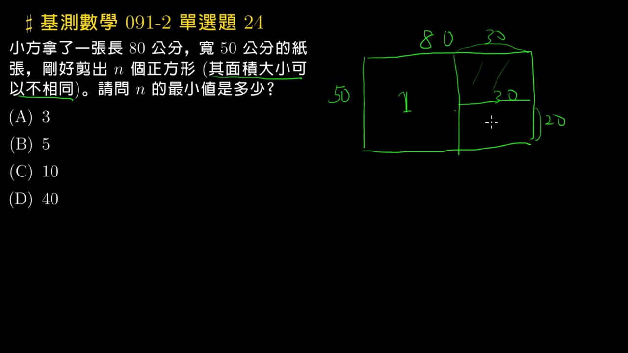 載入中... 相關課程 Back 【基測數學】91v2 單選24:長方形切正方形 相關課程 0 / 750 登入觀看 ⇐ Use this menu to view and help create subtitles for this video in many different languages. You'll probably want to hide YouTube's captions if using these subtitles. 【基測數學】91v2 單選24:長方形切正方形 上傳學習單 下載學習單