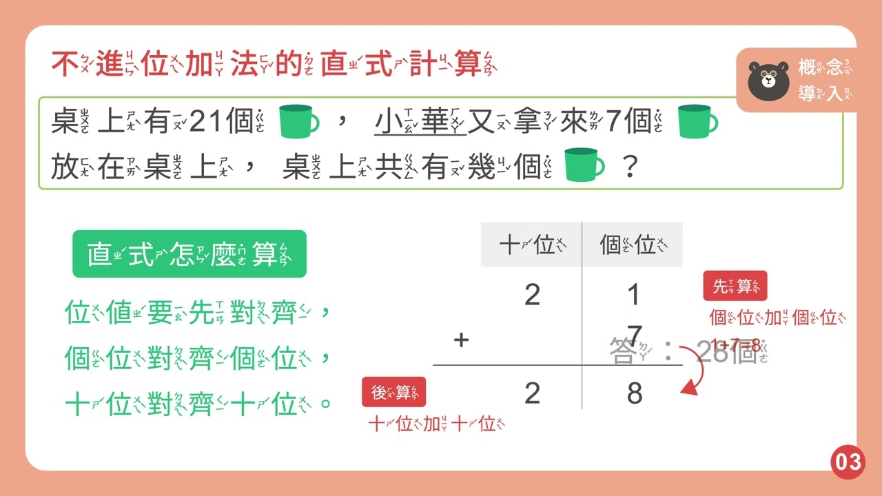 【解題】能熟練無進位的二位數加法直式計算